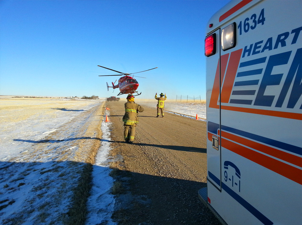 Calling 911 accesses all emergency services in Saskatchewan, including EMS, fire and police. MD Ambulance, located in Saskatoon, dispatches all EMS calls in the Heartland Health Region.